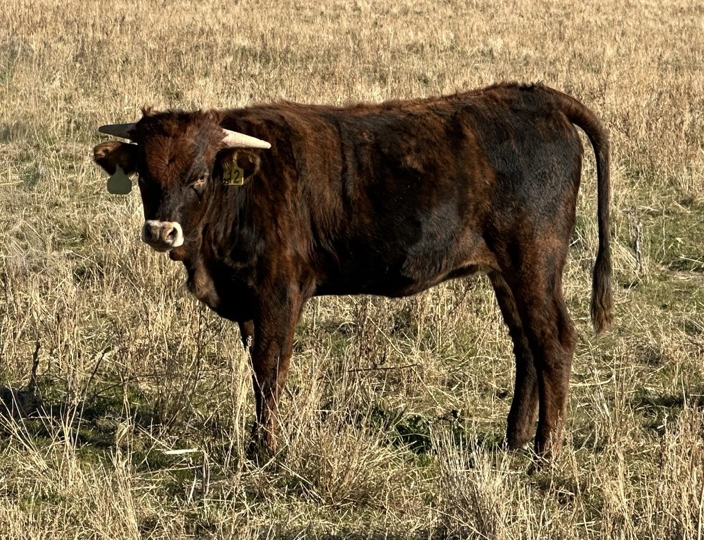 Super brindle heifer by WT Kid Rock ( the longest horned bull in the world!). Her pedigree has 100" top and bottom. Its all there!