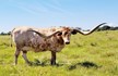 Great young bull, big bodied and good horn direction.